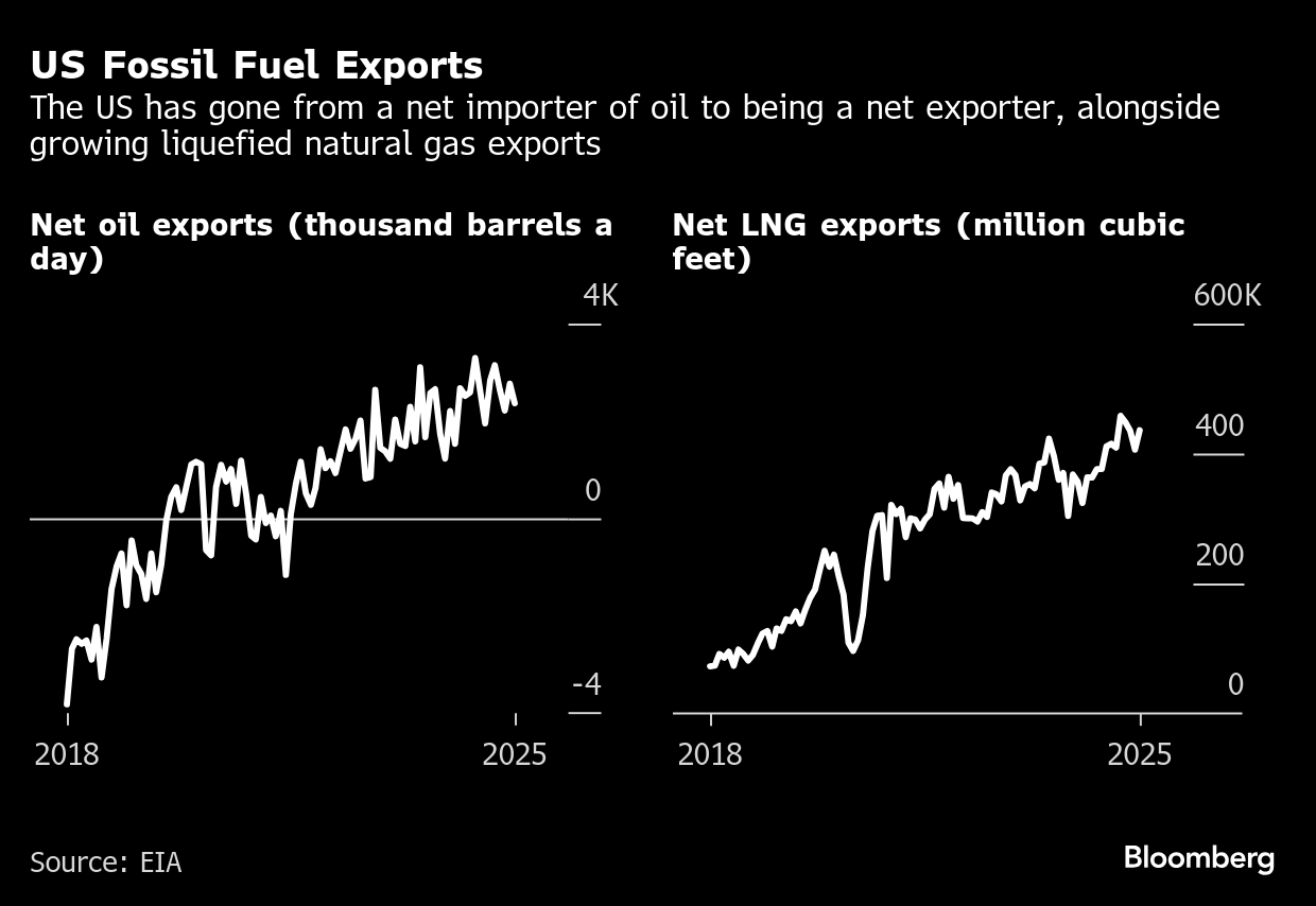 The US, under President Donald Trump’s first term and then former President Joe Biden, pushed for higher oil and gas production. As a result, the country rapidly increased oil and gas exports. Trump is trying to drive production even higher in his second term by loosening regulations while also kneecapping the green technology sector.