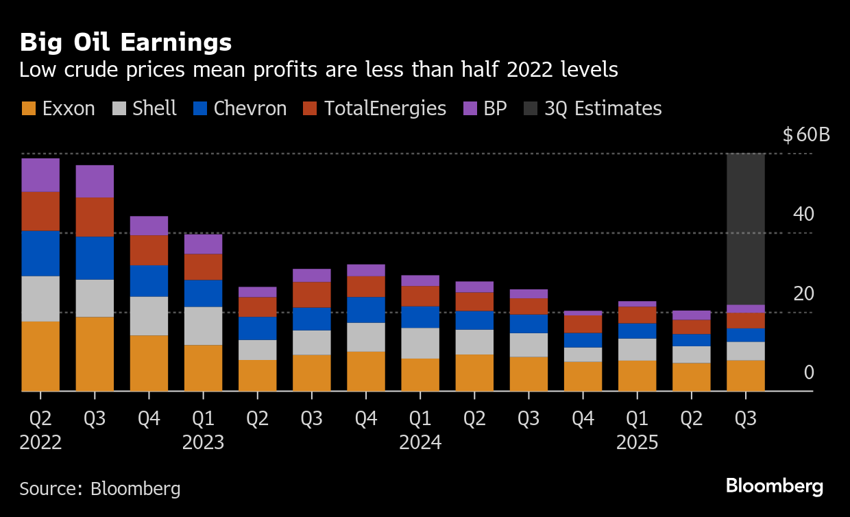 After years of outsized profits as oil demand roared back following the pandemic, the world’s largest energy companies are feeling the pinch of crude prices that have dropped about 14% this year near to a four-year low. In response, they’re cutting jobs, reducing low-carbon investments and trimming share buybacks to channel funds toward the most valuable part of their business: oil and gas production.