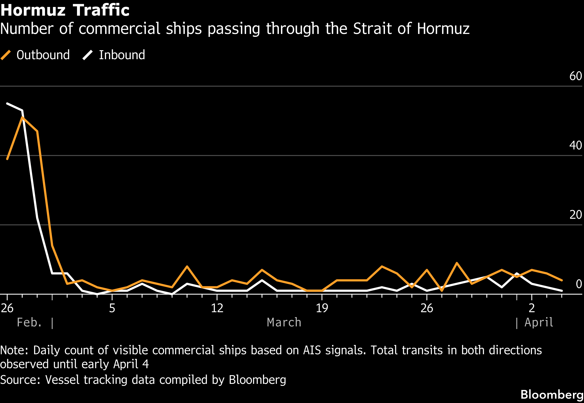 (Bloomberg) -- Traffic through the vital Strait of Hormuz has been picking up in the past week, with the seven-day rolling average for transits on Friday reaching the highest since the war started.