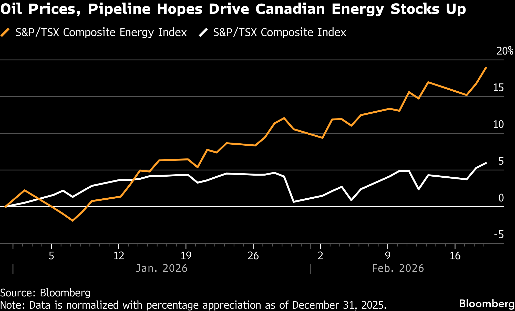 Oil surged this week as traders weighed whether US-Iran talks will be enough to head off conflict after a report suggested US military intervention could come sooner than expected. The S&P/TSX Composite Energy Index rose 1.8% on Thursday, leading the group to an all-time high for the first time since June 2008. The index is up 19% this year, versus a 5.9% advance for the S&P/TSX Composite Index.