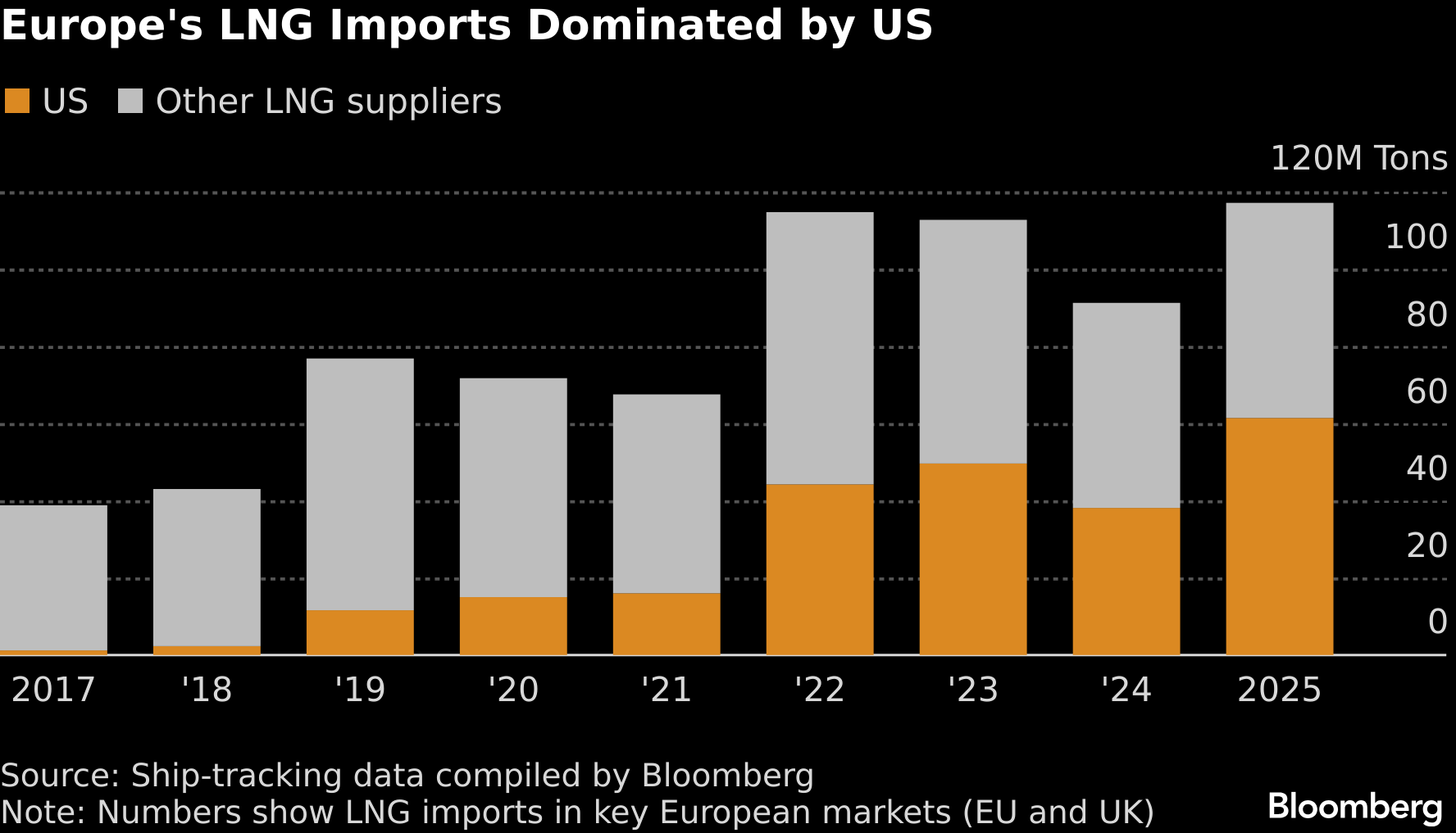The region is expected to buy more than 185 billion cubic meters of LNG, the agency said in a report Friday. Even as overall demand for the fuel is set to drop amid the continued expansion of renewables, Europe will need more to replenish rapidly depleting inventories and sustain exports to war-torn Ukraine.