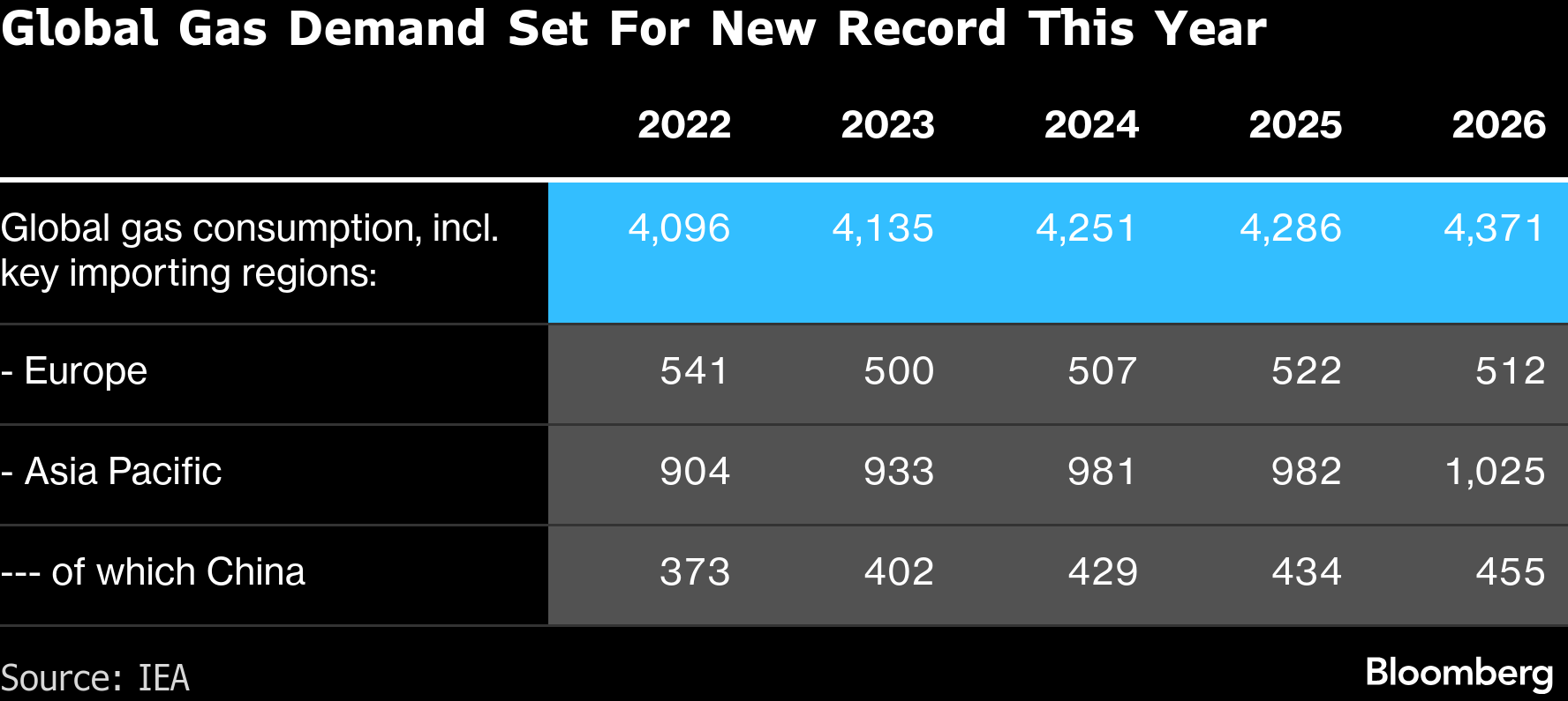 Looking ahead, the IEA expects global gas consumption to rise nearly 2% this year to a record, following growth of less than 1% in 2025. Asia is forecast to be the main driver.