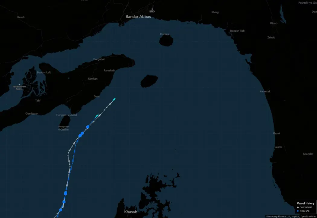 Jag Vasant was chartered by Bharat Petroleum Corp. Ltd. and Pine Gas by Hindustan Petroleum Corp. Ltd., according to people familiar with the matter. The two state-owned refiners did not immediately respond to emails seeking comment.