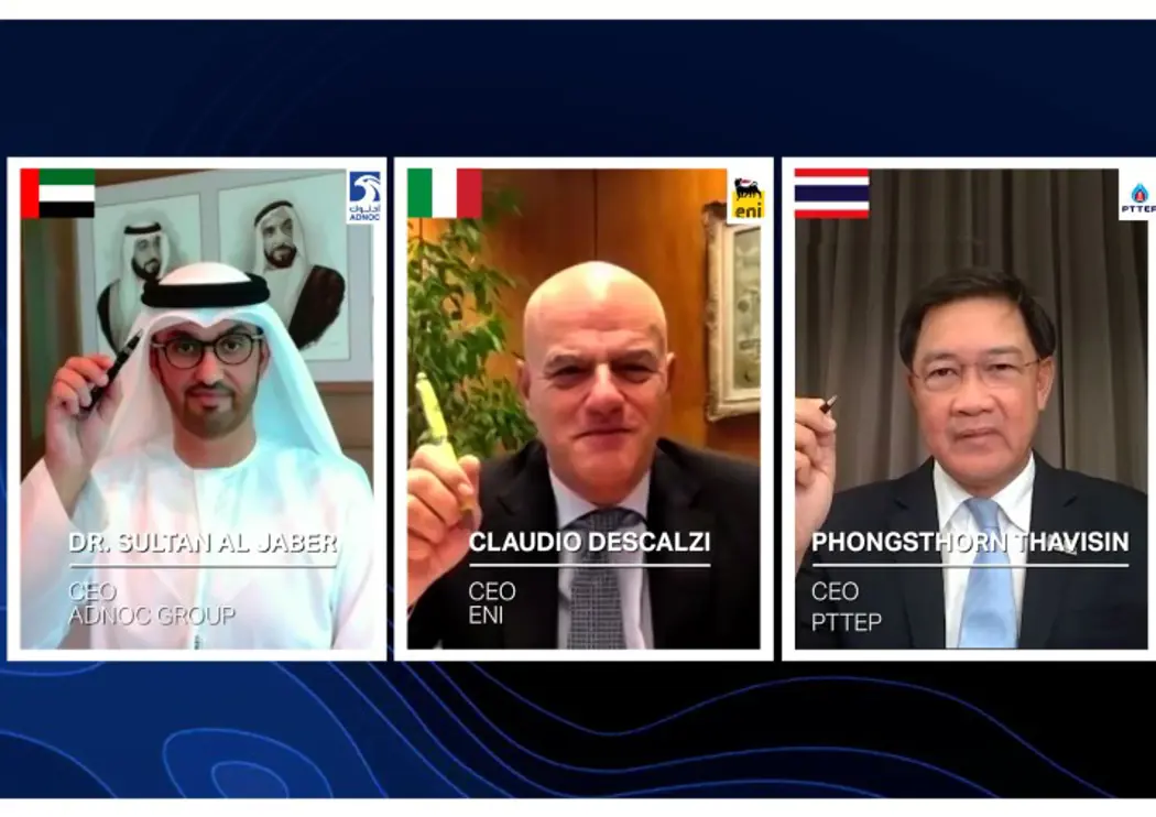The exploration concession agreement was signed by His Excellency Dr. Sultan Ahmed Al Jaber, UAE Minister of Industry and Advanced Technology and ADNOC Group CEO; Claudio Descalzi, CEO of Eni; and Phongsthorn Thavisin, CEO of PTTEP.