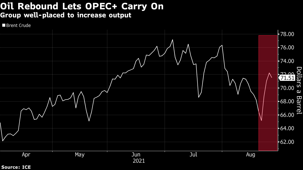 Crude markets faltered earlier this month as the resurgent pandemic threatened demand in China and the U.S. But prices have since recovered after fuel use proved resilient to the latest coronavirus wave, giving the Organization of Petroleum Exporting Countries and its partners more breathing space.