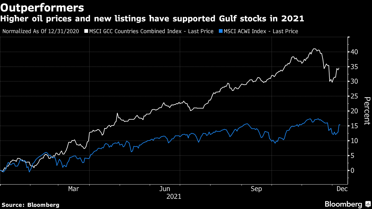 (Bloomberg) -- It’s been the best year in more than a decade for Gulf stocks thanks to booming oil prices. And investors expect further gains in 2022, driven by the soccer World Cup and new listings.