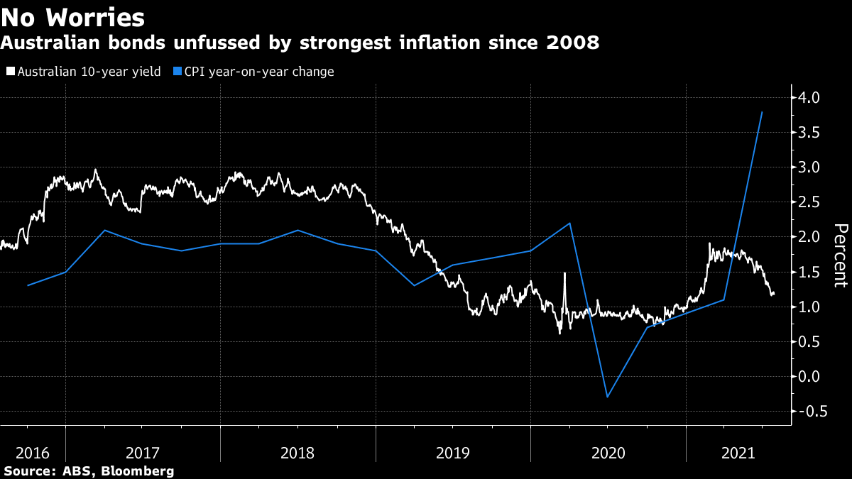 Like many other central banks around the world including the Federal Reserve, the RBA has said above-target inflation readings will be a temporary phenomenon rather that an escalating problem it needs to nip in the bud. RBA chief Philip Lowe and his colleagues expect the attention to return to stoking inflation once the transitory phase passes.