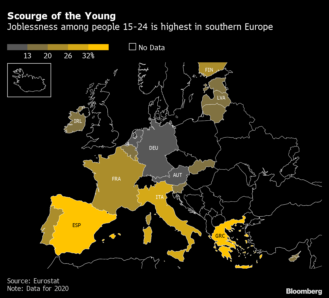 The legacy is daunting. Nine of the region’s top 10 areas for youth unemployment are in southern Europe, ranging as high as 71% in Ceuta, an enclave of Spain. Greece is still scarred from a debt crisis that cost citizens a fifth of disposable income.