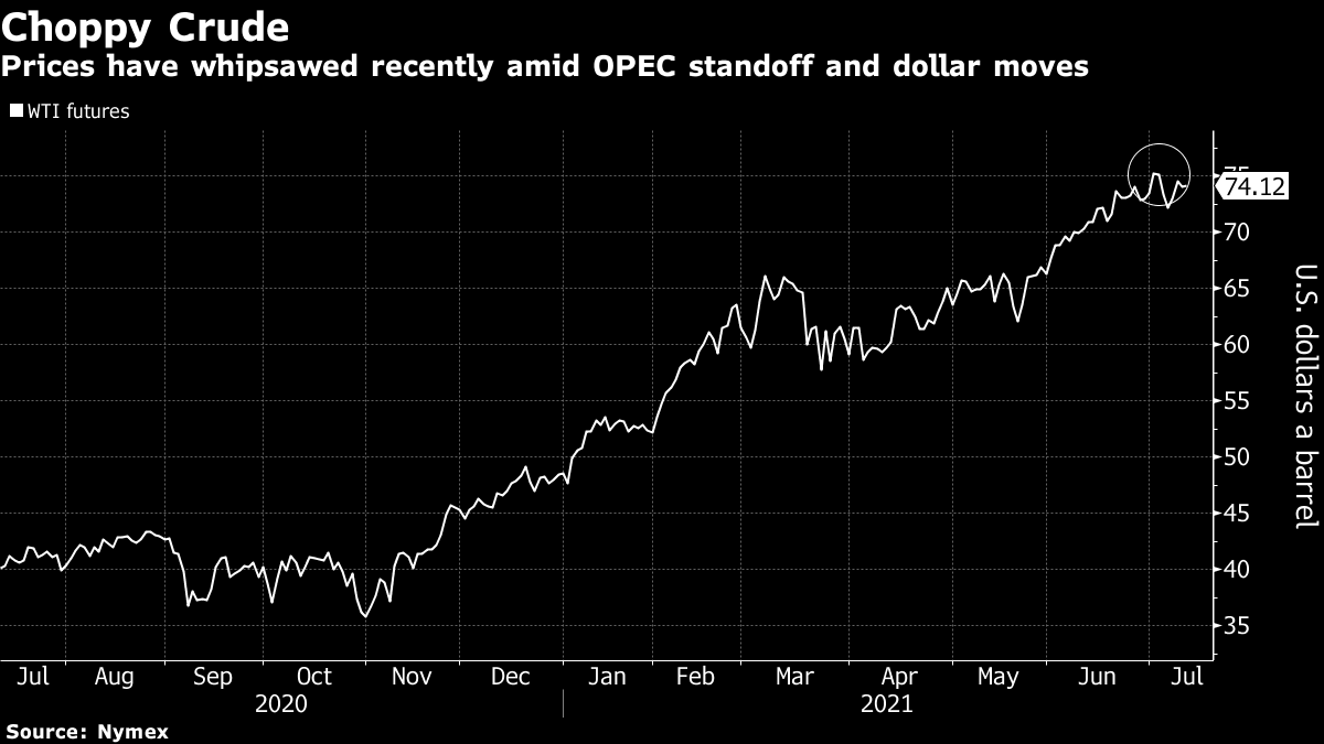 Futures in New York traded in a tight $1.06-range on Tuesday. The U.S. dollar rose for a second session, reducing the appeal of commodities priced in the currency. Meanwhile, the IEA warned in a report that deadlock in the OPEC+ alliance may cause global markets to “tighten significantly.”
