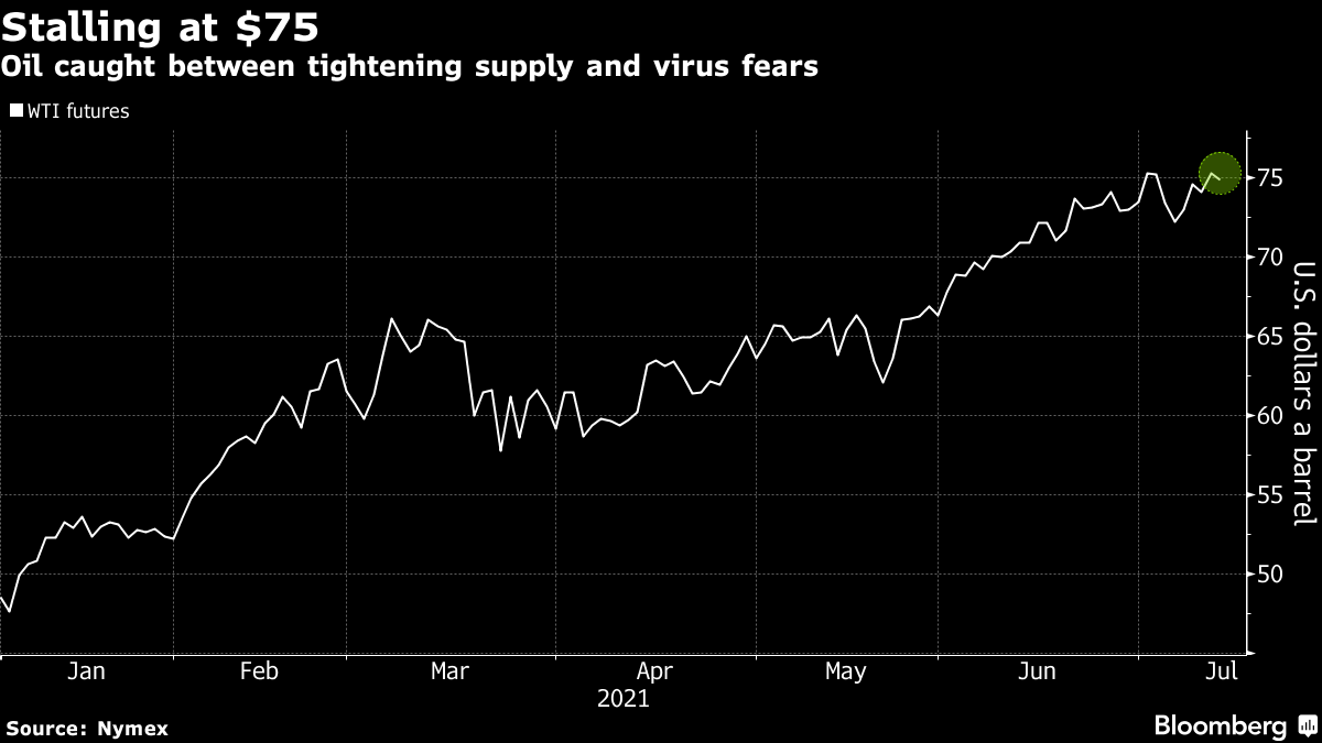 “Trouble is brewing for the oil market,” said Stephen Brennock, an analyst at PVM Oil Associates Ltd. “Fears are mounting that rising Covid-19 Delta cases could delay a full economic recovery. This, in turn, poses a significant threat to oil demand growth in the near-to-medium-term.”