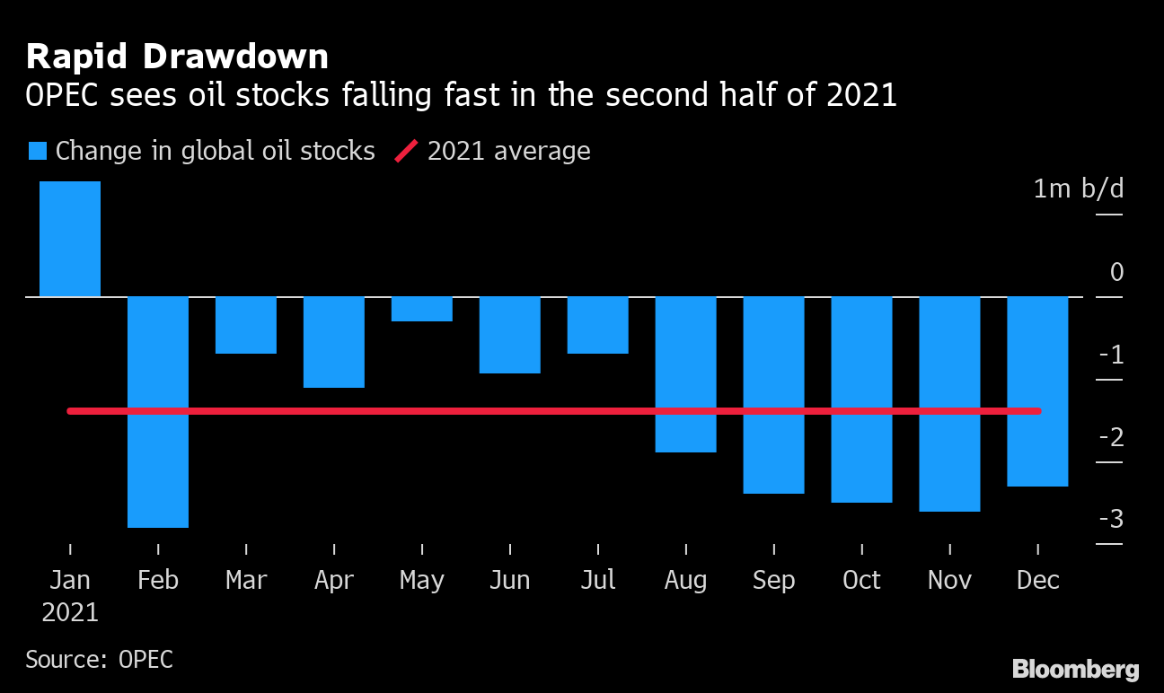 After July, OPEC+ is scheduled to hold production steady until April 2022, according to the deal signed a year ago to rescue producers from a bitter price war. While the agreement can be renegotiated -- and there’ll be pressure to do so as demand continues to recover -- it provides a fallback position for the group.