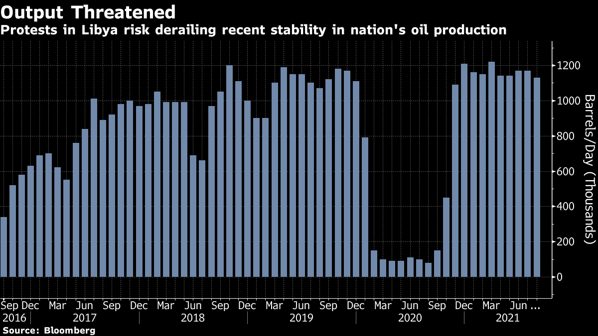 Output may drop by as much as 800,000 barrels a day in the coming days due to the disruptions, according to a Libyan official. While protests due to domestic unrest have beset the country’s oil operations for much of the last decade, a power struggle between its oil minister and the head of the state-run National Oil Corp. has fueled the latest conflict.