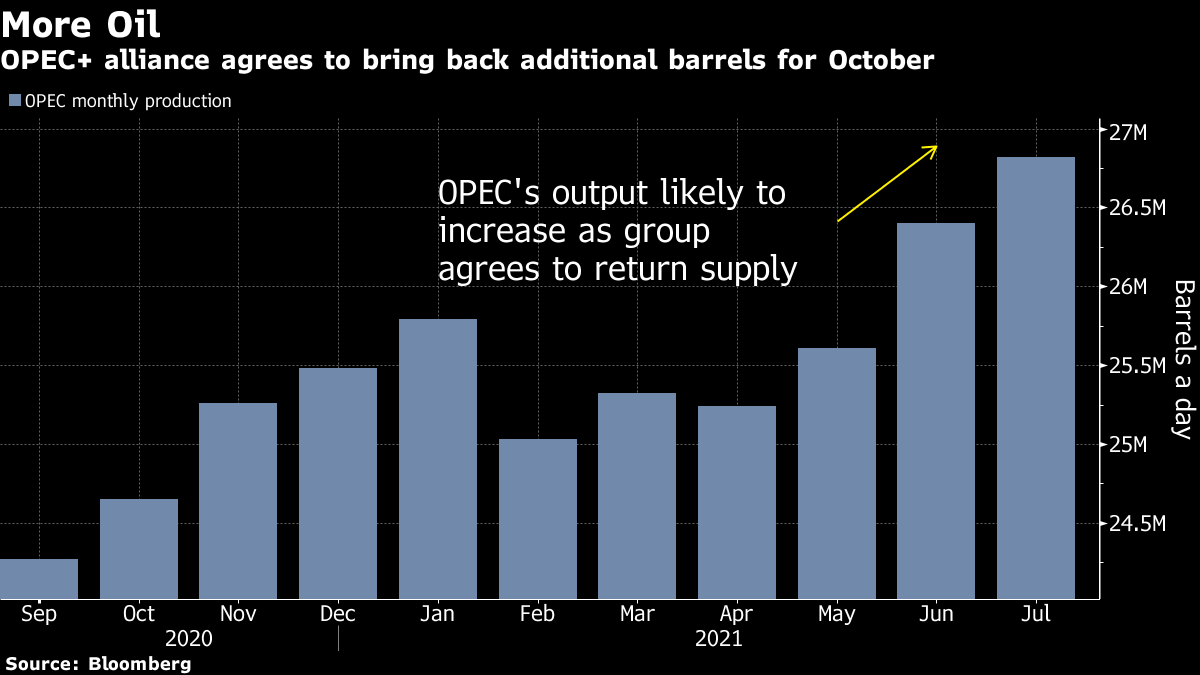 Crude has rallied about 40% this year as consumption bounced back from the impact of the coronavirus pandemic, although the bulk of the gains came in the first half. Against that backdrop, OPEC+ has been gradually restoring more of the supply it suspended last year when the global health crisis erupted.