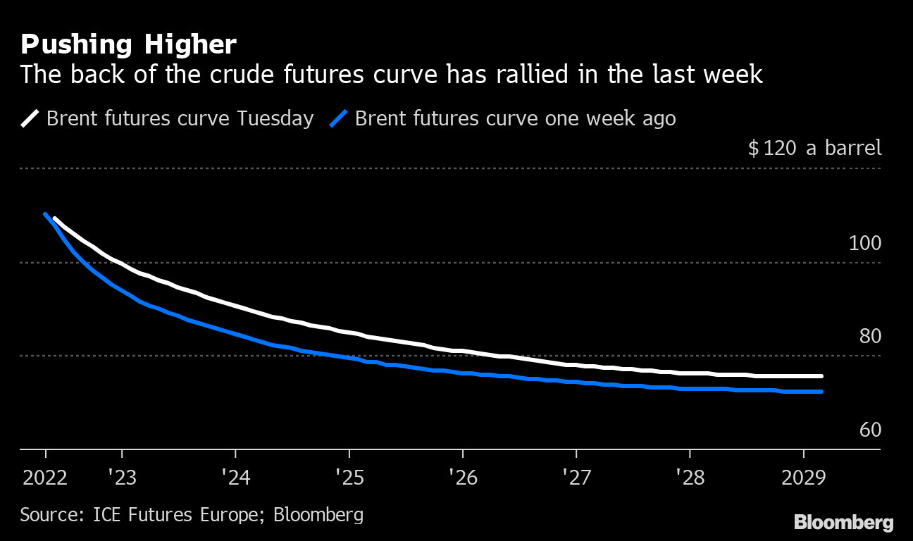 The possibility of new curbs is offsetting the impact in the global crude market of a vast release from the U.S. Strategic Petroleum Reserves (SPR,) beginning in May, in a bid to tame prices. Other countries have said they’ll also make drawdowns. That move has reshaped the oil futures curve, keeping a lid on nearby prices but lifting those further into the future.