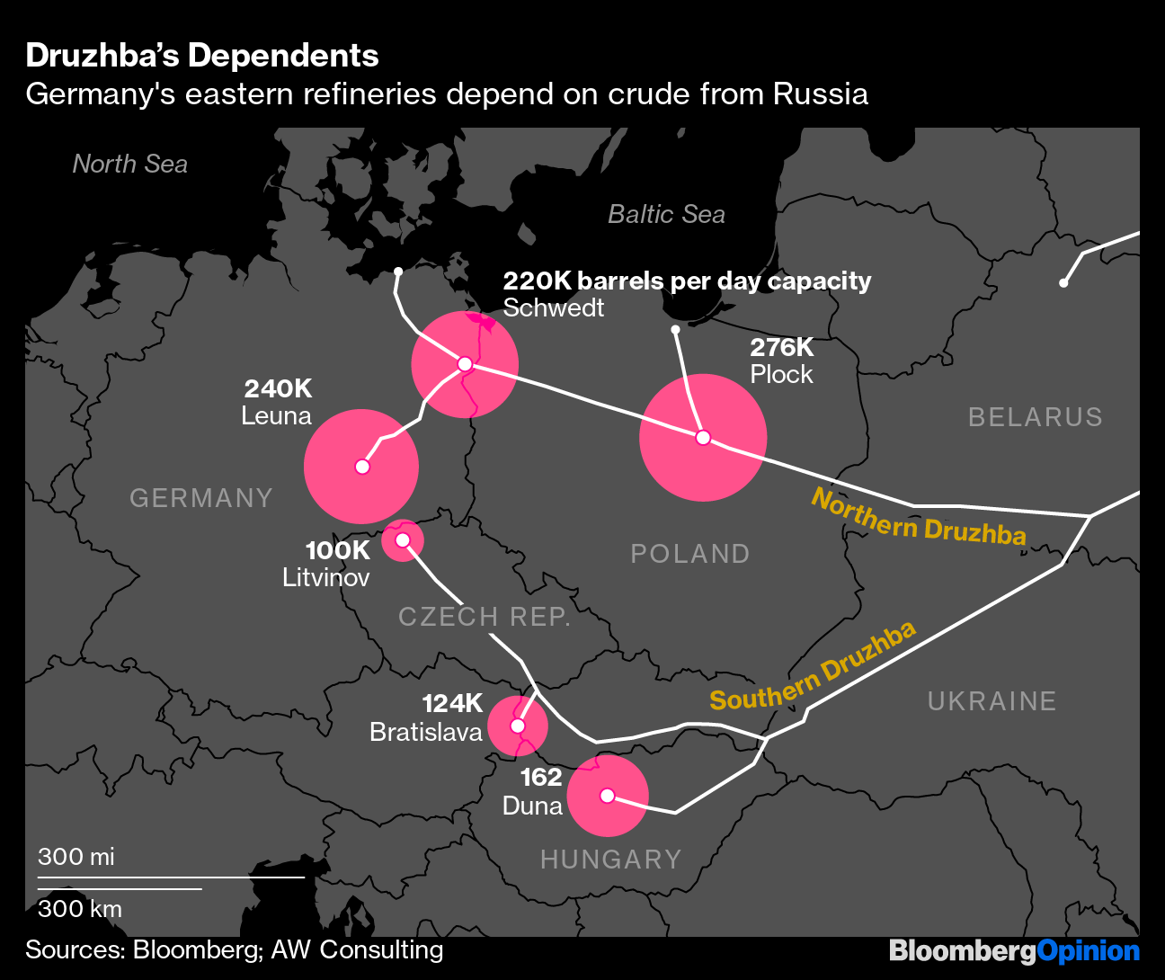 Poland has already taken steps to wean itself of Russian crude, signing a major supply deal with Saudi Arabia in January. But abruptly stopping the flow of Russian crude could be particularly problematic in large parts of Germany.