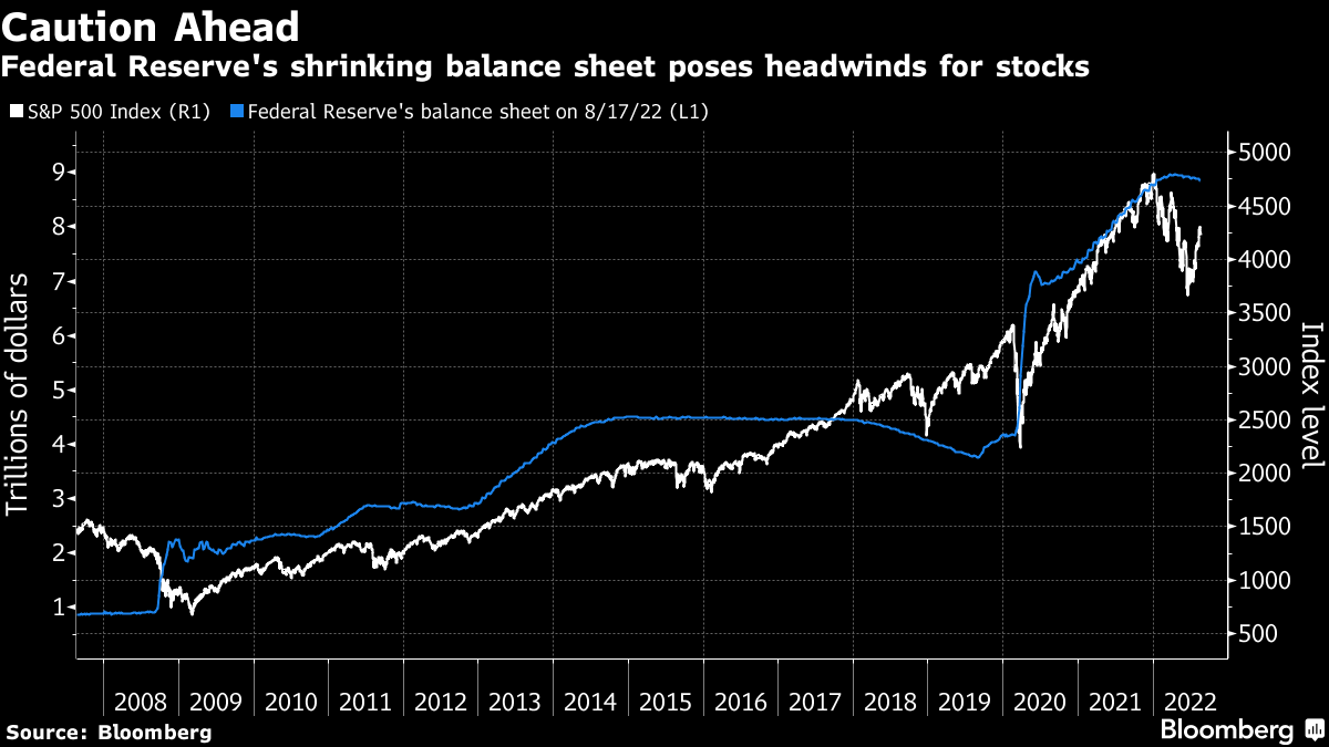 A jump in global shares from June’s bear-market lows, stoked by the market’s expectations for a pivot to slower rate hikes, is fizzling after repeated Federal Reserve policy makers warned that interest rates are going higher. The Jackson Hole symposium gives Fed Chair Jerome Powell a platform to reset those bets, which are vulnerable to the possibility of persistently elevated price pressures even as economic growth stumbles.