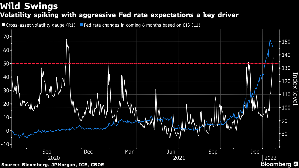 “Volatility is back,” Lori Calvasina, head of U.S. equity strategy at RBC Capital Markets, told Bloomberg Television. “We’re having a sea-change in terms of Fed policy. Equity investors frankly have been behind the curve in anticipating what’s coming, so there’s a lot of catch-up to do.”