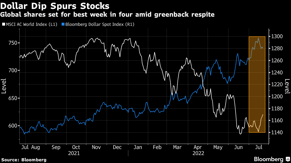 Global stocks remain on course for their best week in a month, paring this year’s equity market rout to about 18%. Speculation that the worst of the selloff has passed is partly behind the move. Tech giant Twitter Inc. is due to report results later.