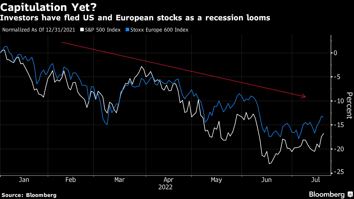 Risk sentiment remains fragile as investors debate whether equities have reached a trough after this year’s selloff amid the war in Ukraine, a slowdown in China and the prospect of a US recession. The resumption of Russian gas exports to Europe through Nord Stream is set to provide some relief for the continent that’s racing to store the fuel before the winter.