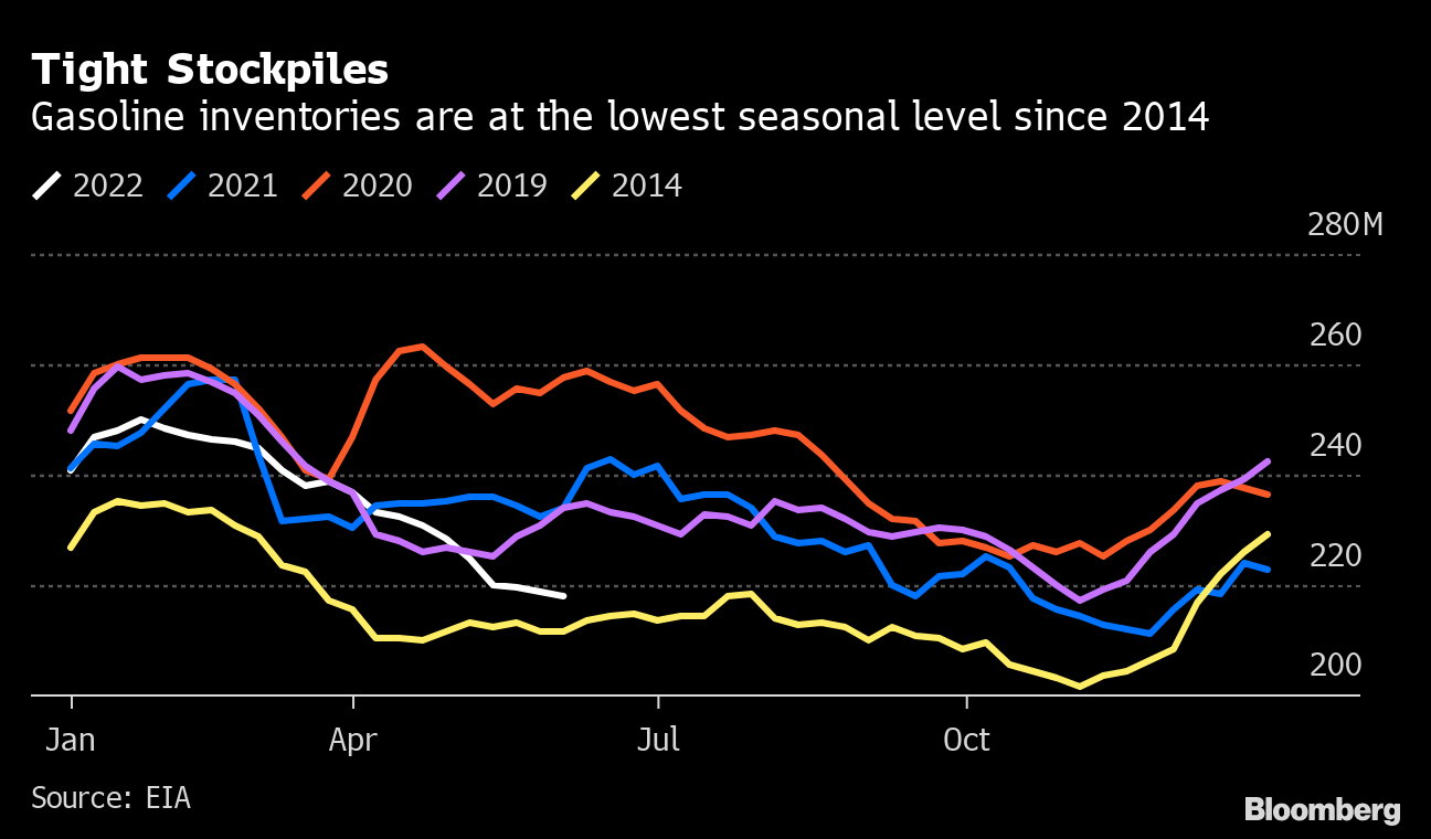 “Gasoline inventories are more in line with levels that we usually see at the end of the driving season and obviously we still have the whole summer ahead of us,” said Warren Patterson, the head of commodities strategy at ING Groep NV. “We expect that the refined products market will see even further tightening over the coming months, which will be bullish for crude prices.”
