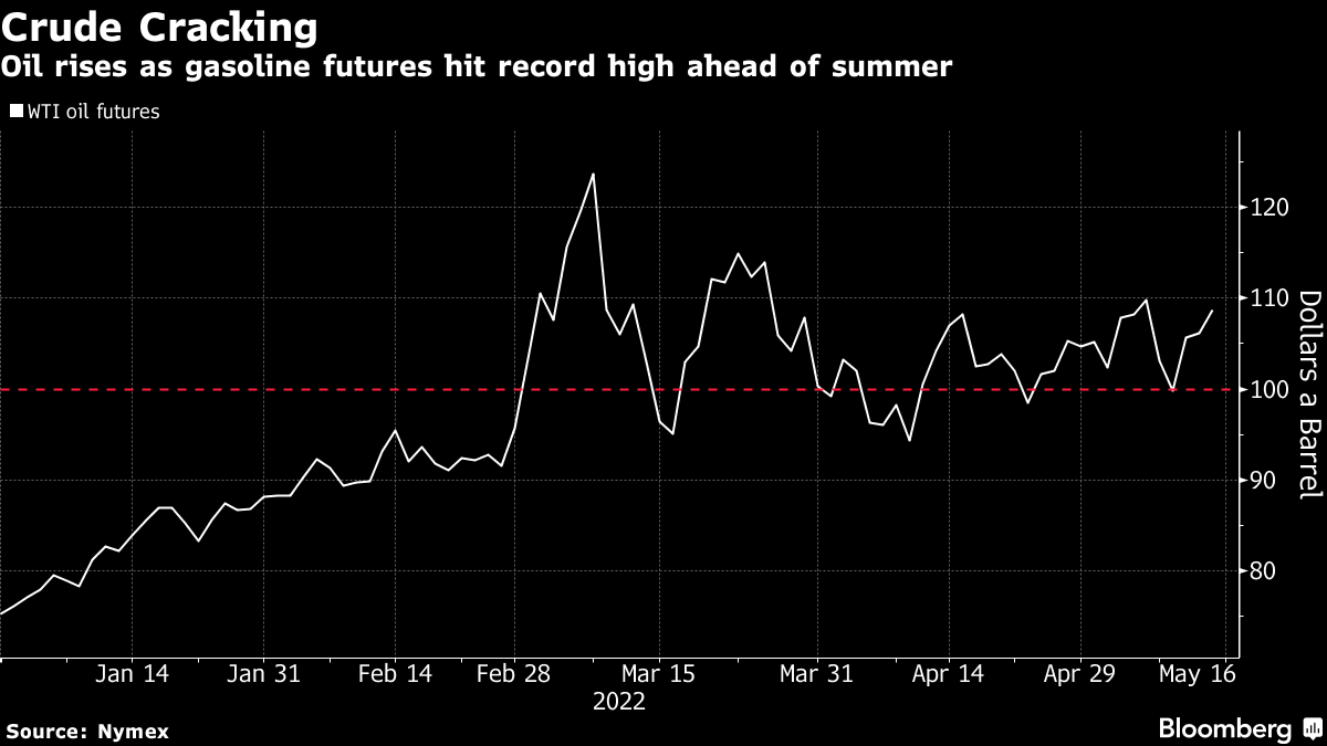 West Texas Intermediate traded near $110 wrapping up another week of tumultuous trading where lowered liquidity exacerbated price moves. Diesel exports from Russia dropped in April from their prewar level as oil buyers seek to punish one of the world’s biggest suppliers. Investors have also been keeping a close eye on China as authorities in Beijing denied rumors that the city will go into lockdown even as new Covid-19 cases climbed.