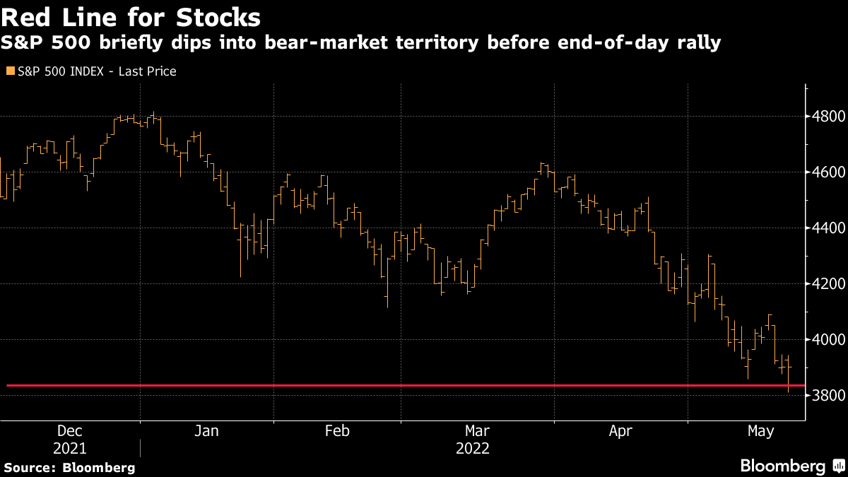 (Bloomberg) -- A dramatic late-session rally brought the S&P 500 back from the brink of a bear market, but the index still sank for a seventh straight week in a stretch of weakness not seen since 2001.