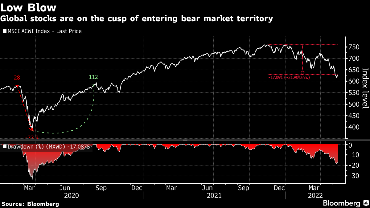 The search for relative havens comes as riskier assets have been roiled by worries over surging interest rates, inflation and slowing economic growth. The speculative fervor that drove meme stocks, blank-check companies and cryptocurrencies has waned. Down 17% from a record high hit six months ago, the MSCI All Country World Index is nearing a bear market.
