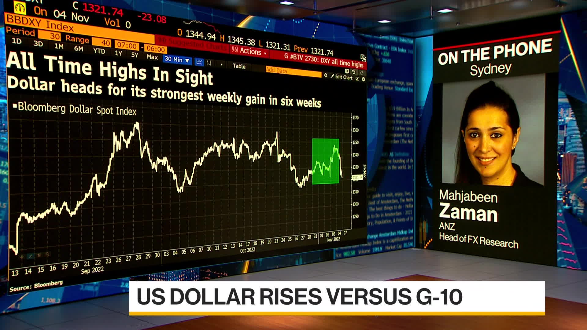 “Over the next three to four months, dollar will continue to keep moving higher,” Mahjabeen Zaman, head of FX research at Australia & New Zealand Banking Group Ltd., said on Bloomberg Television. “That’s really consistent with the recent FOMC Fed meeting we had where they said they’re going to slow the pace but push on peak rates.”