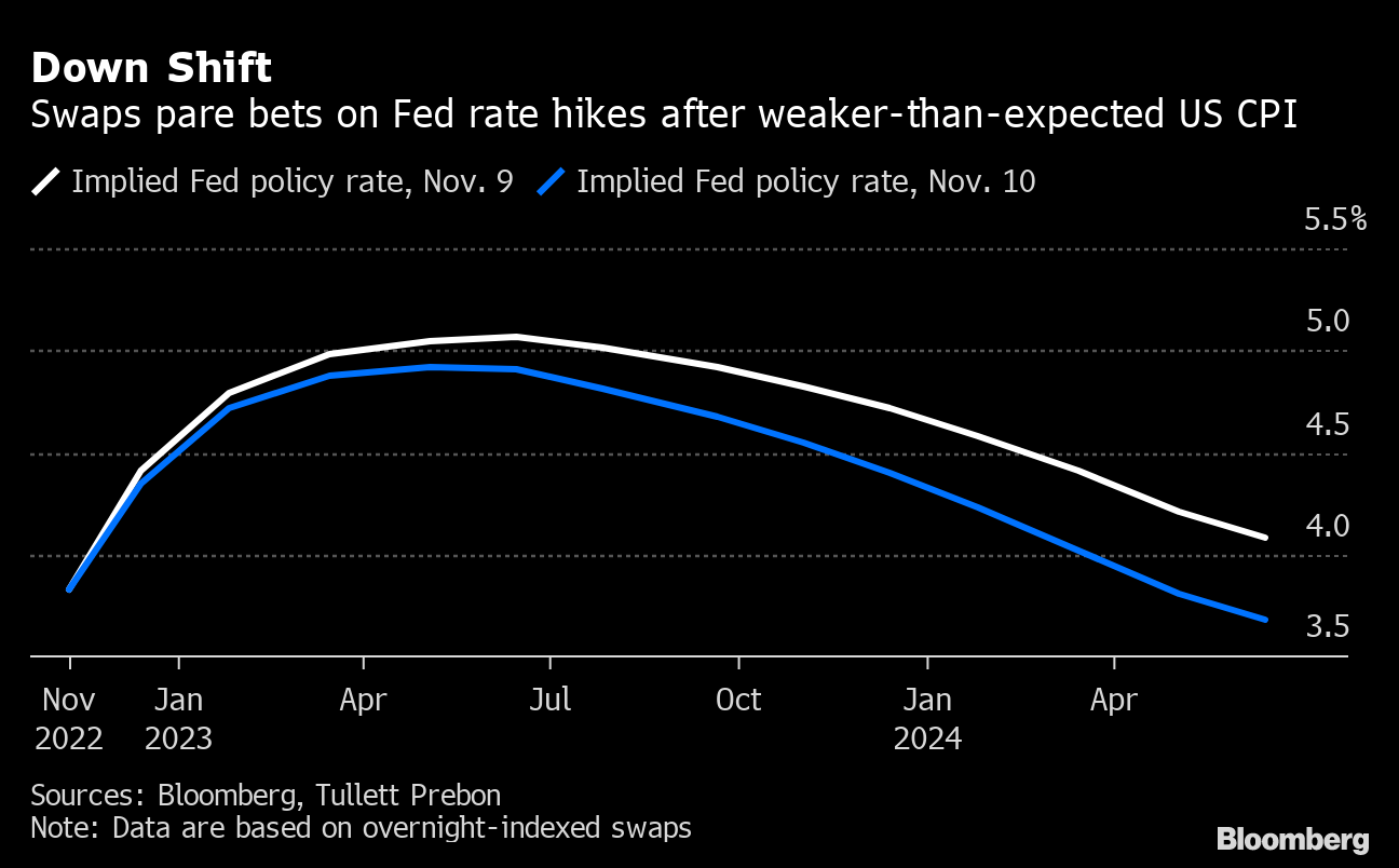 Elsewhere, US-listed Chinese stocks higher rose and commodities from oil to soybeans to precious metals jumped after China eased some Covid restrictions.
