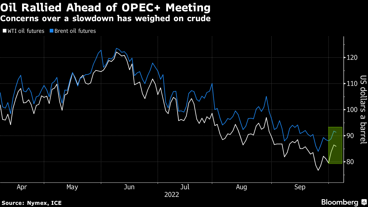 A cut of that magnitude would reflect the scale of concern from the alliance about the outlook for energy demand in the face of rapidly tightening monetary policy. The US benchmark recently capped its first quarterly loss in two years after giving up all the gains made after Russia’s invasion of Ukraine.