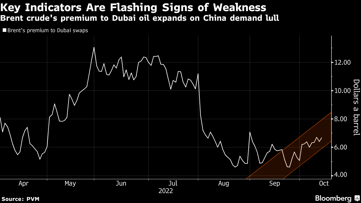 (Bloomberg) -- Key oil market indicators are flashing signs of weakness in Asia as China’s Covid Zero policy continues to weigh on the demand outlook.