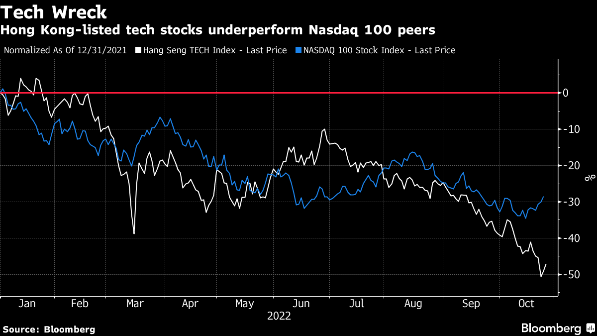A near 5% rebound in a gauge of US-listed Chinese stocks on Tuesday helped claw back some of the record loss suffered in the wake of President Xi Jinping breaking with China’s collective leadership. Hong Kong’s tech gauge made strong gains for a second day but was still short of recouping Monday’s near 10% slide.