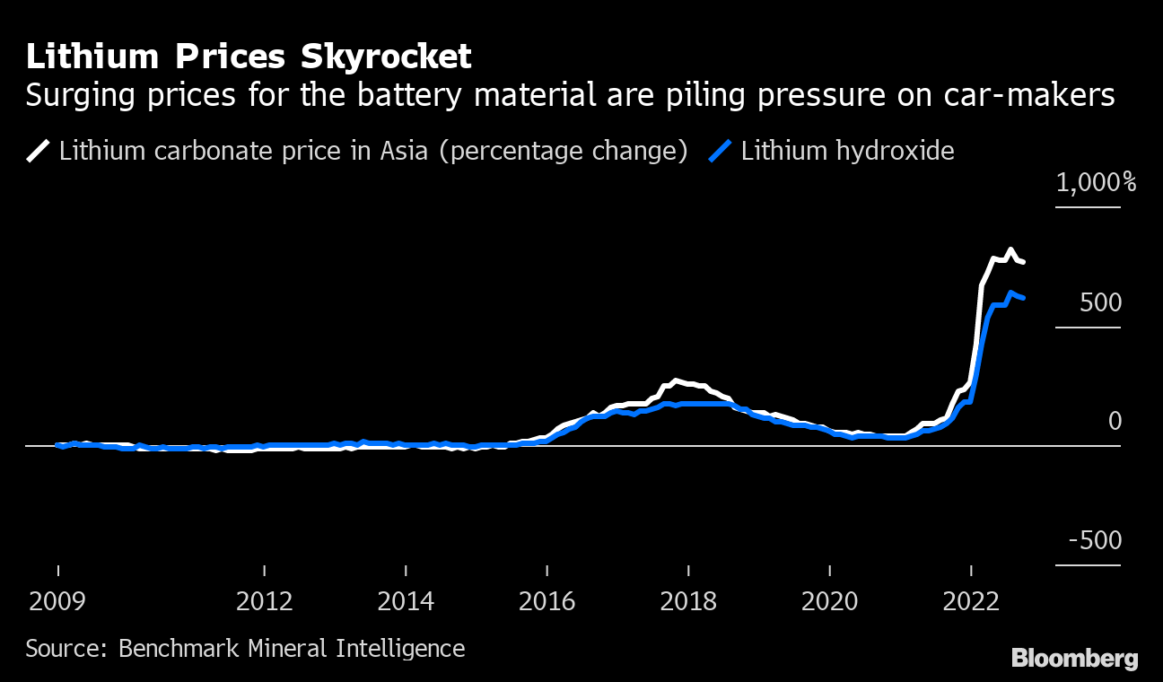 One of the concerns in the lithium market is that the extreme supply shortages create a risk that prices rise so high, or metal becomes so difficult to access, that automakers have to stop buying.