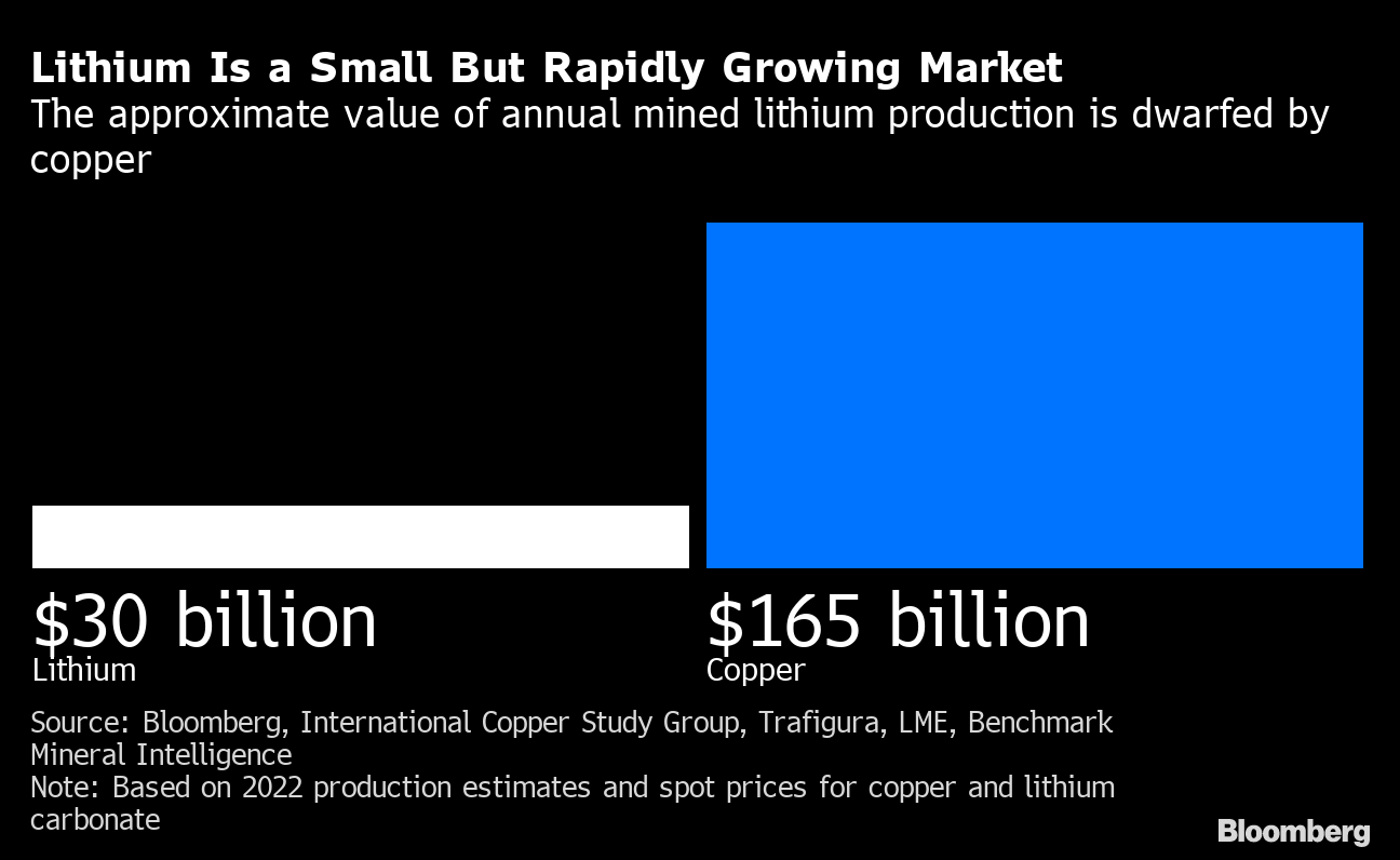 Of course, the comparison with oil 50 years ago isn’t a perfect one. The lithium market is tiny compared with more established and liquid commodity markets — annual world oil production is worth more than $3 trillion at current prices, versus $30 billion for lithium. The metal is also refined into highly specialized chemicals that some experts argue are much less fungible.