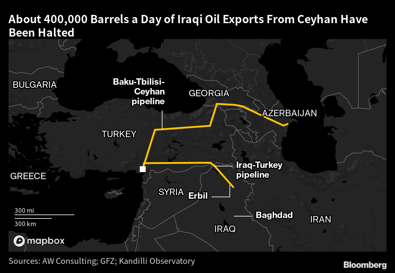 Turkey closed a pipeline running from northern Iraq to Ceyhan in March after an international business tribunal said KRG authorities shouldn’t export oil from the Mediterranean terminal without Baghdad’s approval. The move was part of Baghdad’s long-running attempt to assert its right to manage resources in Kurdistan, which has been pumping and selling oil independently.