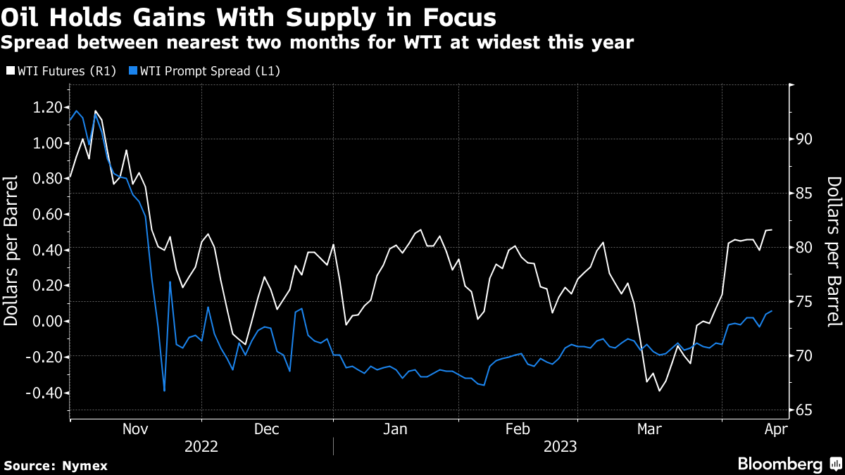 West Texas Intermediate traded above $81 a barrel after rallying by 2.2% on Tuesday. Shipments from Russia have weakened after Moscow vowed to reduce production, according to tanker-tracking data. In the Middle East, meanwhile, pipeline flows from Iraq’s semi-autonomous Kurdistan region remain halted.