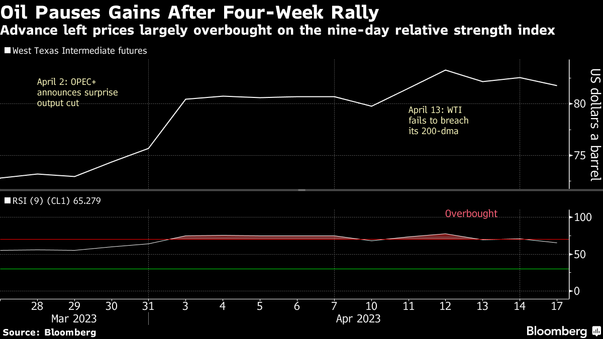 Technicals are also providing headwinds for the commodity as the four-week rally has left crude in overbought territory, signaling a correction is possible in the short term. The US benchmark failed to break through its 200-day moving average last week and has been trading lower ever since.
