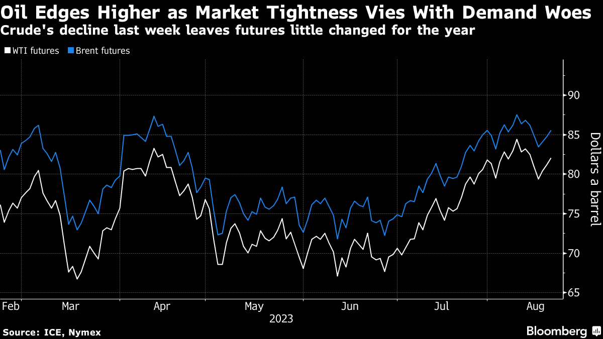 Global benchmark Brent traded above $85 a barrel, and is up more than 2% since last Wednesday’s close. Supply curbs from OPEC+ linchpins Russia and Saudi Arabia have driven a rally since late June, while US crude stockpiles have shrunk to the least since January.