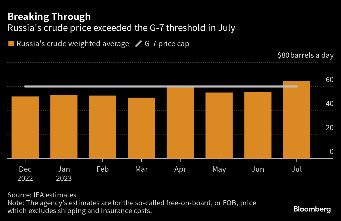 Russia Oil Passes Price Cap as Export Revenue Hits 2023 High