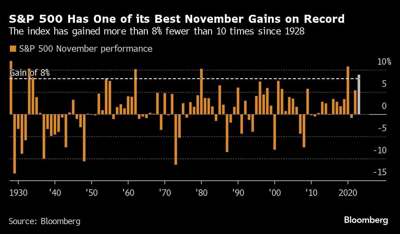 “Almost everyone was offsides coming into November,” said Ryan Detrick, chief market strategist at Carson Group. “So there’s still a big opportunity for traders to chase gains in December, too.”