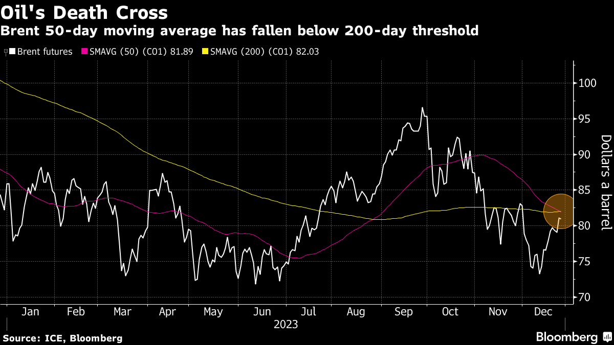 Other signals are less positive. Both crude benchmarks are facing a so-called death cross, with the 50-day moving average below the 200-day counterpart. Some traders see that pattern as heralding further weakness.