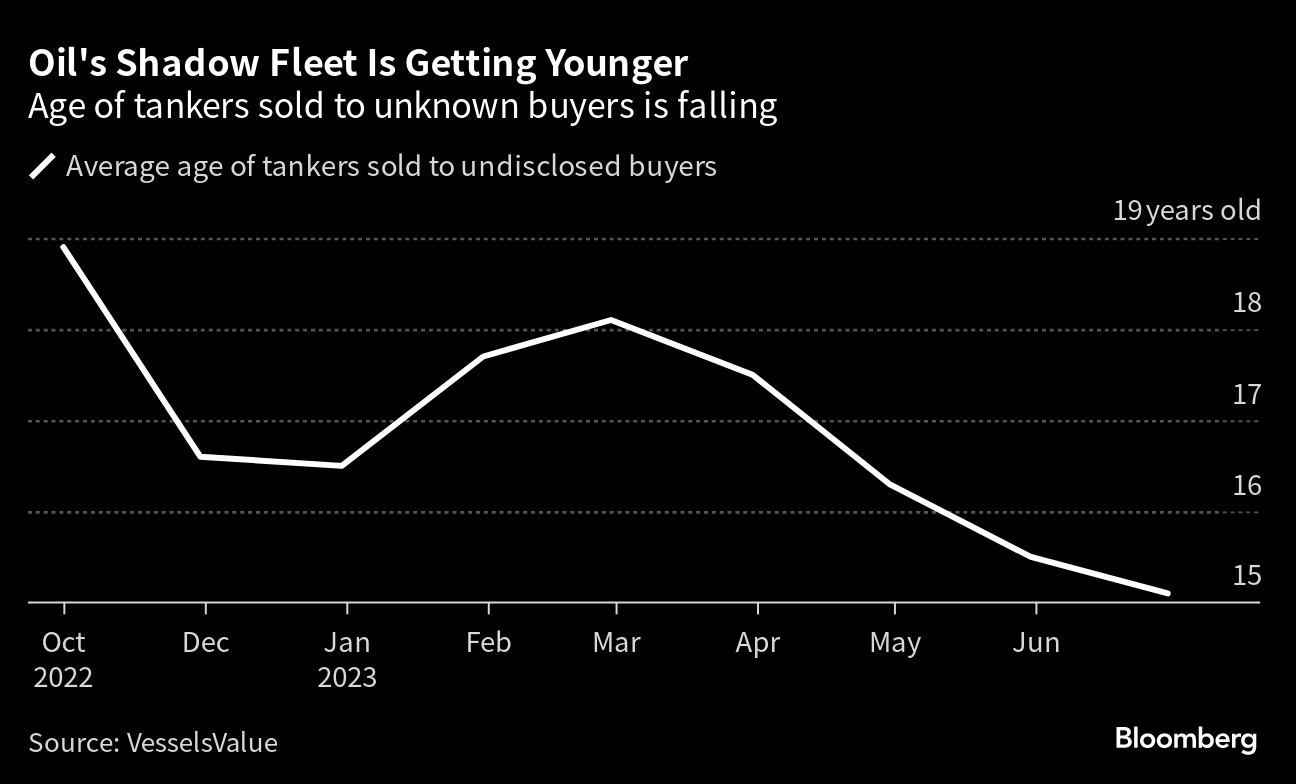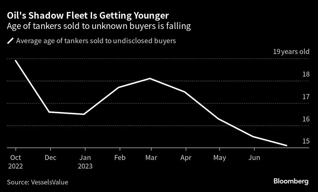 When buying for the Russia trade first emerged, it made sense to purchase the oldest vessels available. Those ships are the cheapest, and operating without western services enabled them to bypass many of the sanctions in place on oil exports, including a $60-a-barrel price cap on Russian crude that was imposed by the Group of Seven.