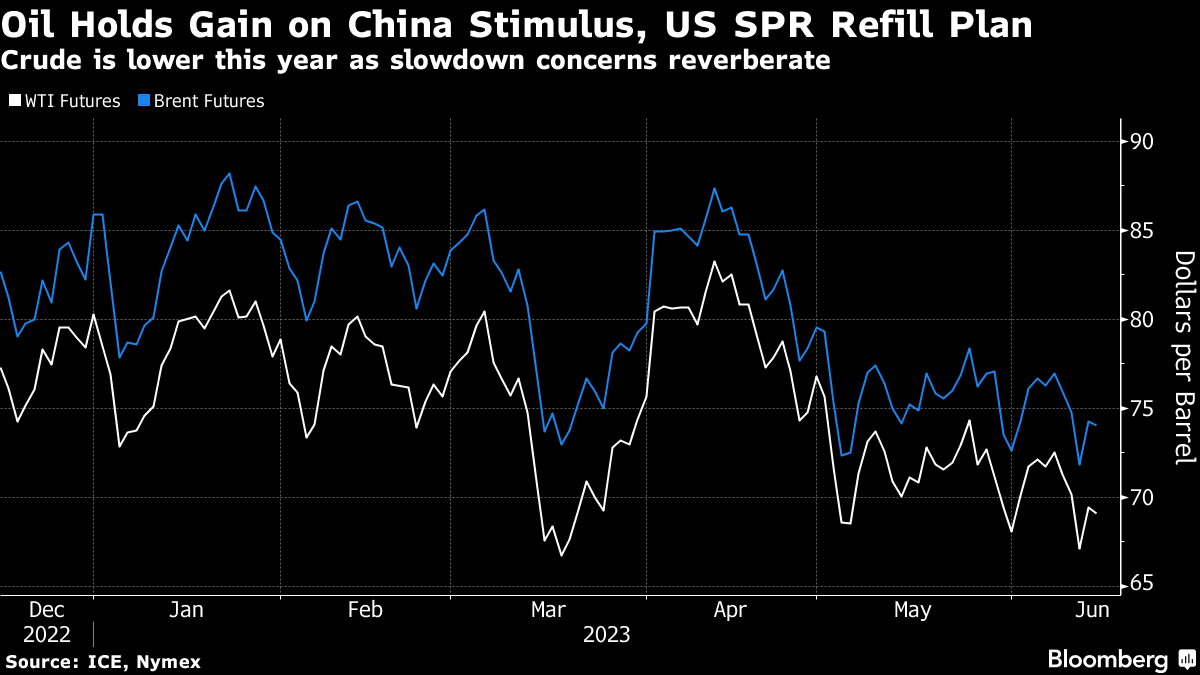 The US is planning to buy about 12 million barrels of oil this year to refill its depleted emergency reserves, according to people familiar. Slowing inflation is also adding to expectations the Federal Reserve will pause interest-rate hikes for the first time in 15 months.