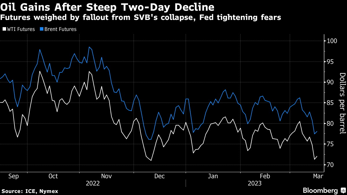 (Bloomberg) -- Oil rose from its lowest close in three months as traders took stock of the outlook for demand amid turmoil in the US banking sector.