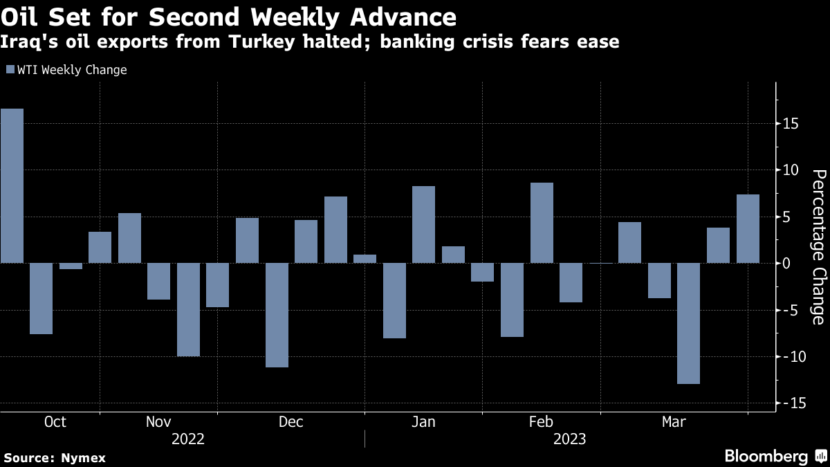Oil still remains on track for a fifth monthly loss, primarily due to a banking crisis that rippled through markets earlier in the month, though the worst of the turmoil now appears over. Resilient Russian supply and strikes in France that have curbed crude demand also added to the bearishness.