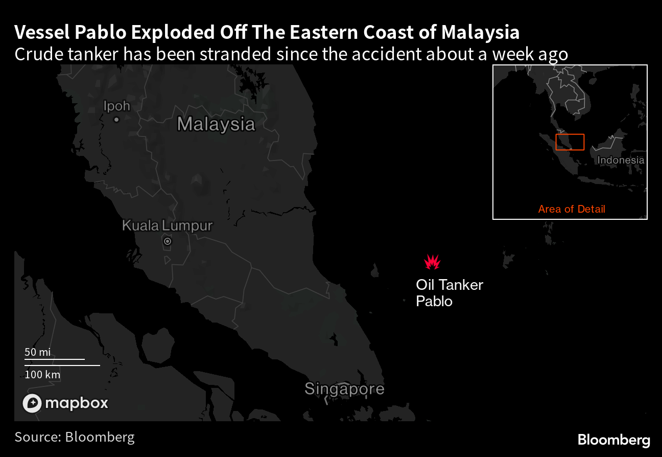 (Bloomberg) -- Off the coast of Malaysia, in one of the world’s busiest shipping channels, an explosion on board the aging oil tanker Pablo ripped off its deck like a sardine can and began a fire that sent dark plumes of smoke into the sky.