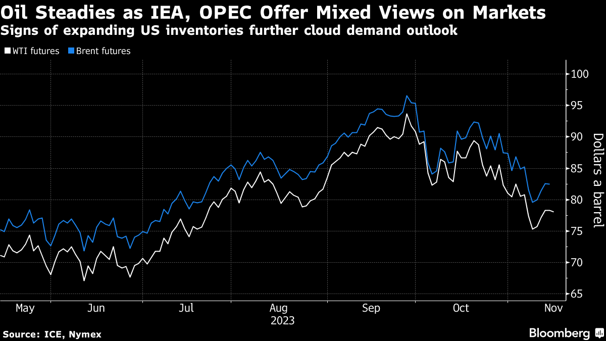 Global benchmark Brent traded near $83 a barrel, while West Texas Intermediate was above $78. The International Energy Agency said global oil markets won’t be as tight as expected this quarter, with production growth in the US and Brazil beating forecasts. That came after an assessment from OPEC that highlighted robust growth trends and healthy fundamentals.