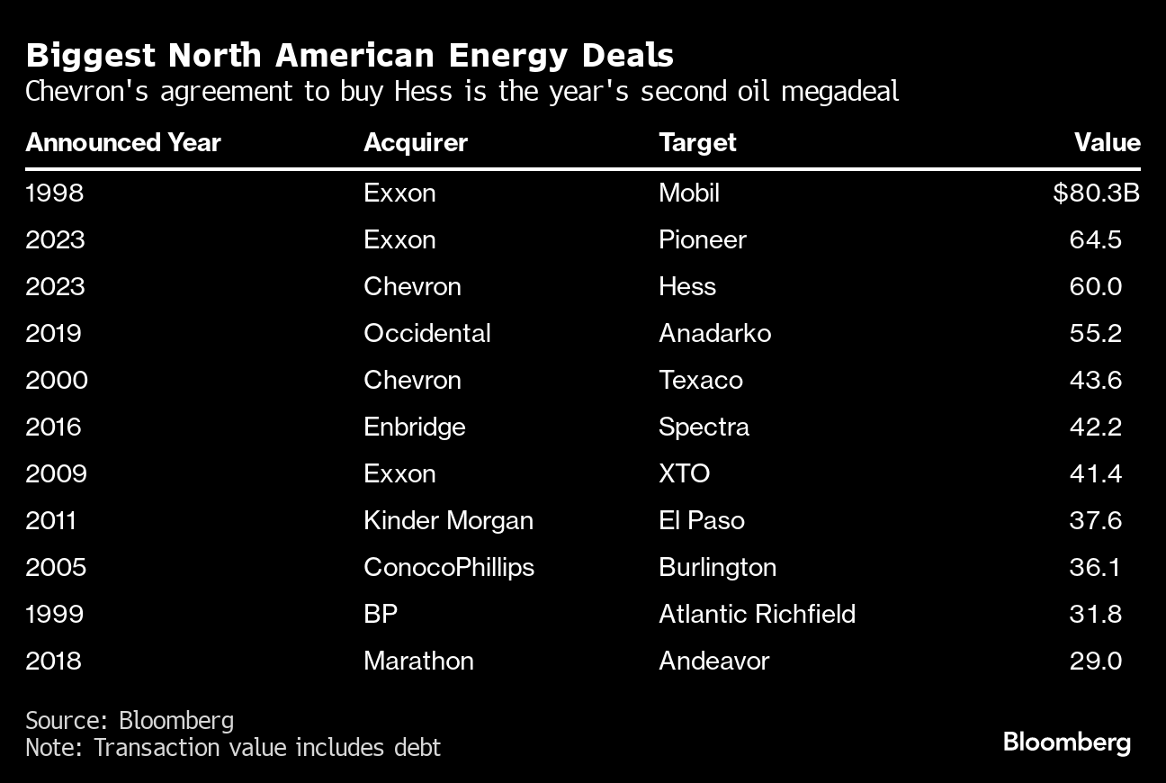 These high-profile departures and the lack of a permanent leader come at an unfortunate time, when European oil majors are at risk of falling even further behind their American counterparts amid a flurry of takeovers. Exxon Mobil Corp. and Chevron Corp. are ushering a new era of supermajors by spending a combined $113 billion on acquisitions just this month.