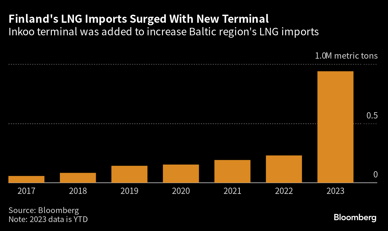 While the Baltic market is relatively small, the pipeline affected by the leak connects the new floating import terminal for liquefied natural gas in Finland with Estonia. The Baltic region heavily depends on LNG after cutting Russian pipeline gas purchases.