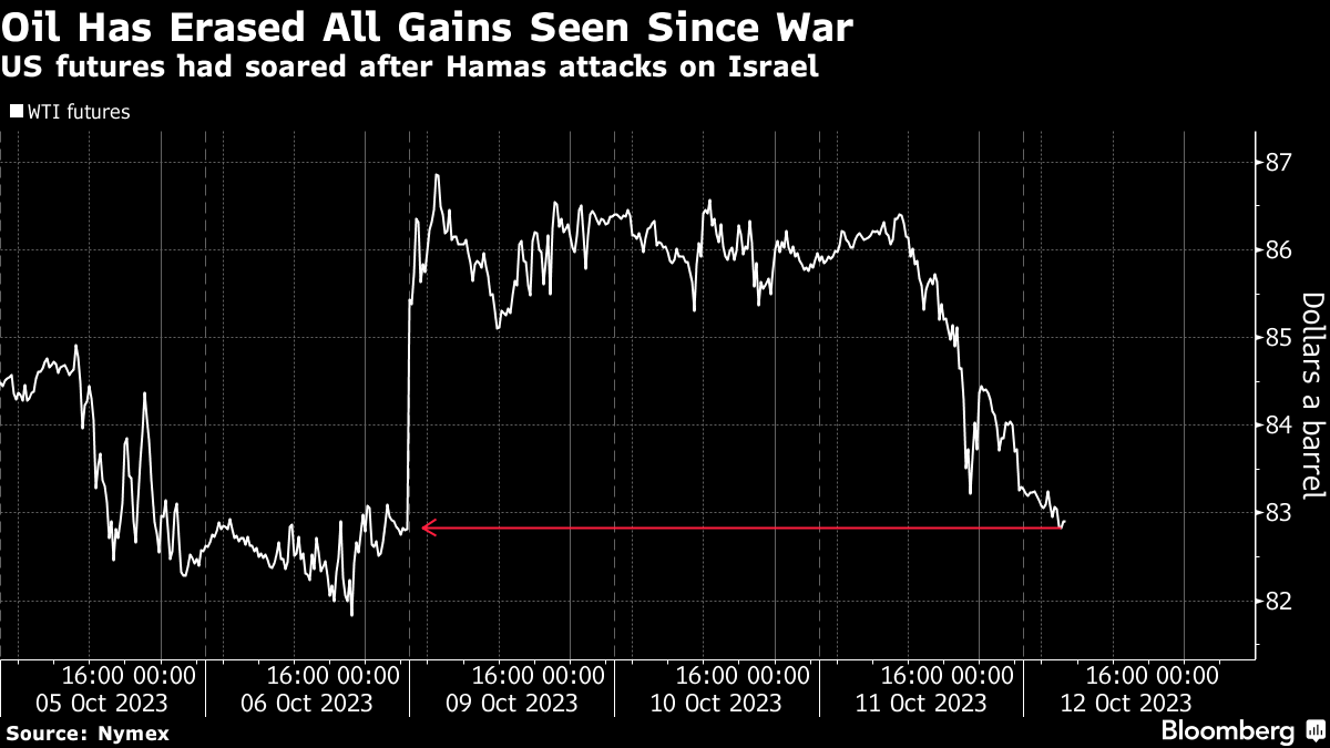 Oil Erases Gain Since Hamas Attack as Concerns of Wider War Ebb
